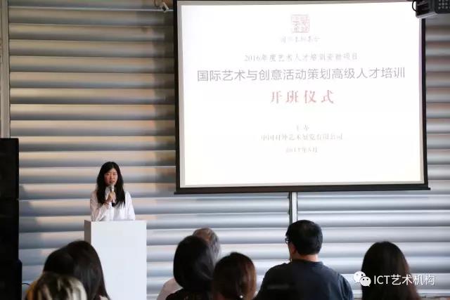 本項(xiàng)目是國(guó)家藝術(shù)基金2016年度藝術(shù)人才培訓(xùn)資助項(xiàng)目,培訓(xùn)將通過(guò)專題授課、交流參訪、項(xiàng)目實(shí)訓(xùn)、講座交流等形式,從理論到實(shí)踐層面為學(xué)員提供學(xué)習(xí)歷練的高端平臺(tái)和國(guó)際合作機(jī)遇。國(guó)家藝術(shù)基金管理中心主任韓子勇,中國(guó)對(duì)外文化集團(tuán)副總經(jīng)理張樹(shù)新,中國(guó)對(duì)外藝術(shù)展覽有限公司副總經(jīng)理馬瑞青,30名來(lái)自全國(guó)各地學(xué)員和多家媒體記者參加了開(kāi)班儀式。