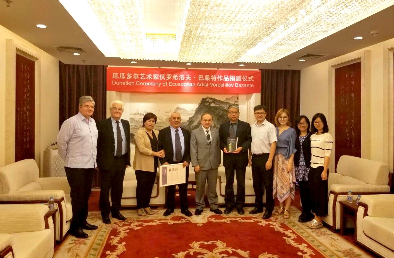 6月16日,厄瓜多爾藝術家伏羅希洛夫·巴桑特作品捐贈儀式在我集團舉行。厄瓜多爾駐華大使何塞·博爾哈、我集團副總經理閻東、厄瓜多爾駐華公使克勞德·勞拉出席了捐贈儀式。