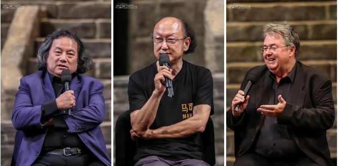 隨著轉(zhuǎn)臺旋轉(zhuǎn),主創(chuàng)們登臺亮相。在記者們的提問中,主創(chuàng)們興奮地分享了《馬可·波羅》的創(chuàng)作難點與亮點。作曲家恩約特·施耐德表示:“中文的發(fā)音和語言是一個挑戰(zhàn),所以我想辦法去翻譯所有的臺詞,我把臺詞錄進錄音帶里,一字一句地、一夜一夜地去聽這些錄音。從這些中文的詞里尋找歐洲的旋律。”編劇韋錦現(xiàn)場還給大家“劇透”了女主角的名字其實是有深意的,傳有“傳說”的意思,云也有“說”的意思,“傳云”也就是“傳說”。