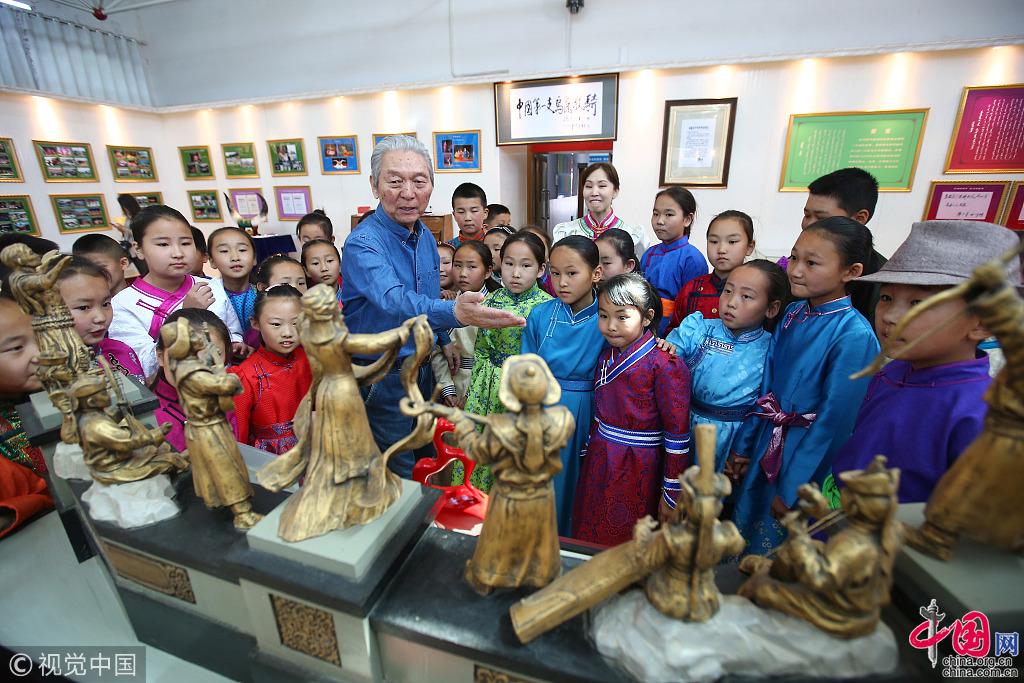 80歲高齡的巴圖朝魯風(fēng)塵仆仆趕回他的故鄉(xiāng)——錫林郭勒盟蘇尼特右旗,就是為了看看那里成立快一年的蘇尼特少兒合唱團(tuán)最近的訓(xùn)練成果。巴圖朝魯是第一代烏蘭牧騎隊員,曾擔(dān)任過第五任隊長,在烏蘭牧騎一干就是20多年,后來調(diào)任內(nèi)蒙古廣播電臺,長期從事少年兒童藝術(shù)創(chuàng)作、教育工作,就算是退休也從沒停止過工作。