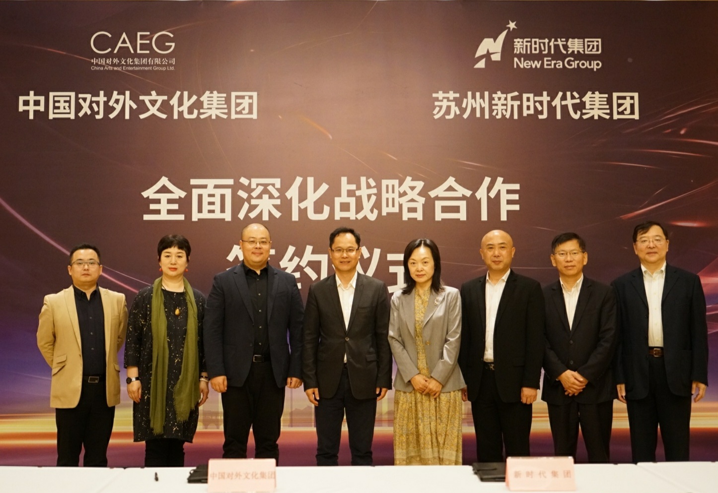 10月16日下午,中國對外文化集團有限公司與蘇州新時代文體會展集團有限公司戰略合作協議簽約儀式在蘇州文化藝術中心舉行。中國對外文化集團黨委書記、董事長李金生,蘇州工業園區黨工委委員、管委會副主任、宣傳部長夏芳出席并見證了簽約儀式。蘇州新時代集團黨委書記、董事長陳龍介紹了集團整體情況。中國對外文化集團副總經理劉鵬,蘇州新時代集團總裁陸國良簽署了合作協議。