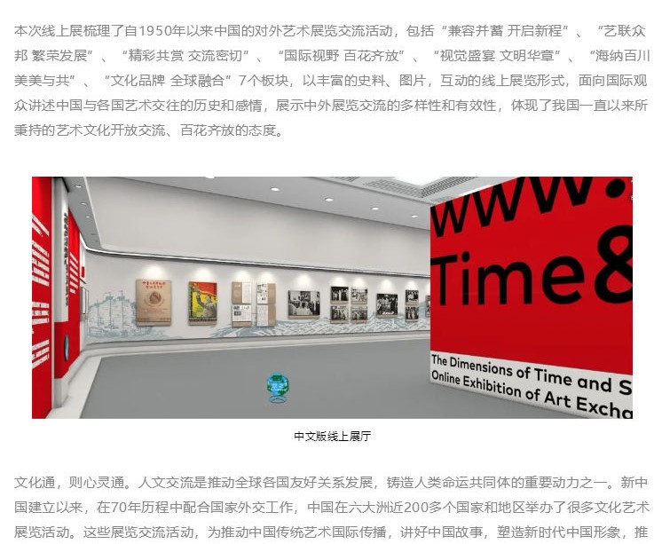 近日,“時空之維—中國與世界的藝術交往”線上展成功發(fā)布。展覽由中國對外文化集團有限公司主辦,中國對外藝術展覽有限公司承辦,以中、英、法、阿、意、西六種語言呈現(xiàn)。