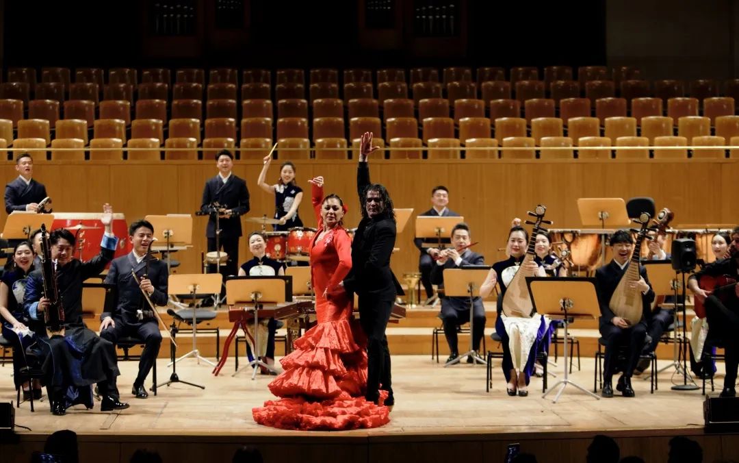 開幕音樂會(huì)由中央民族樂團(tuán)、北京京劇院與西班牙馬德里大區(qū)管弦樂團(tuán)、弗拉門戈樂隊(duì)聯(lián)袂呈現(xiàn)。兩國樂團(tuán)演奏了融合中西音樂特色的新創(chuàng)曲目《陽光永遠(yuǎn)照耀著我們的友誼》,靈感源于中國樂曲《陽光照耀著塔什庫爾干》和西班牙樂曲《流浪者之歌》;《貴妃醉酒》讓西班牙觀眾領(lǐng)略了京劇的獨(dú)特風(fēng)采;西班牙女高音歌唱家瑪斯瑅用中文演唱《我愛你中國》,傳遞了中西友好的情誼,深深感染了現(xiàn)場(chǎng)觀眾;中央民族樂團(tuán)團(tuán)長趙聰與西班牙音樂家演奏的《玫瑰探戈》展現(xiàn)了中西合奏友好旋律、唱響美美與共的獨(dú)特魅力,將演出推向高潮。兩國藝術(shù)家以樂會(huì)友、以藝通心,充分體現(xiàn)了東西方文化的互融互鑒。