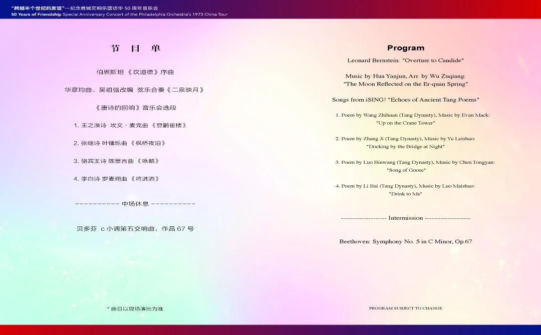 2023年,“跨越半個世紀的友誼”紀念費城交響樂團訪華50周年音樂會節目單。
