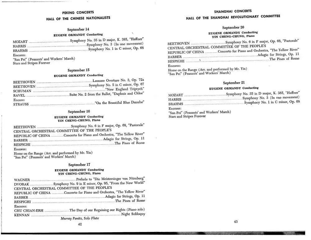 1973年,費城交響樂團來華,在北京民族文化宮和上海市府大禮堂的演出節目單。