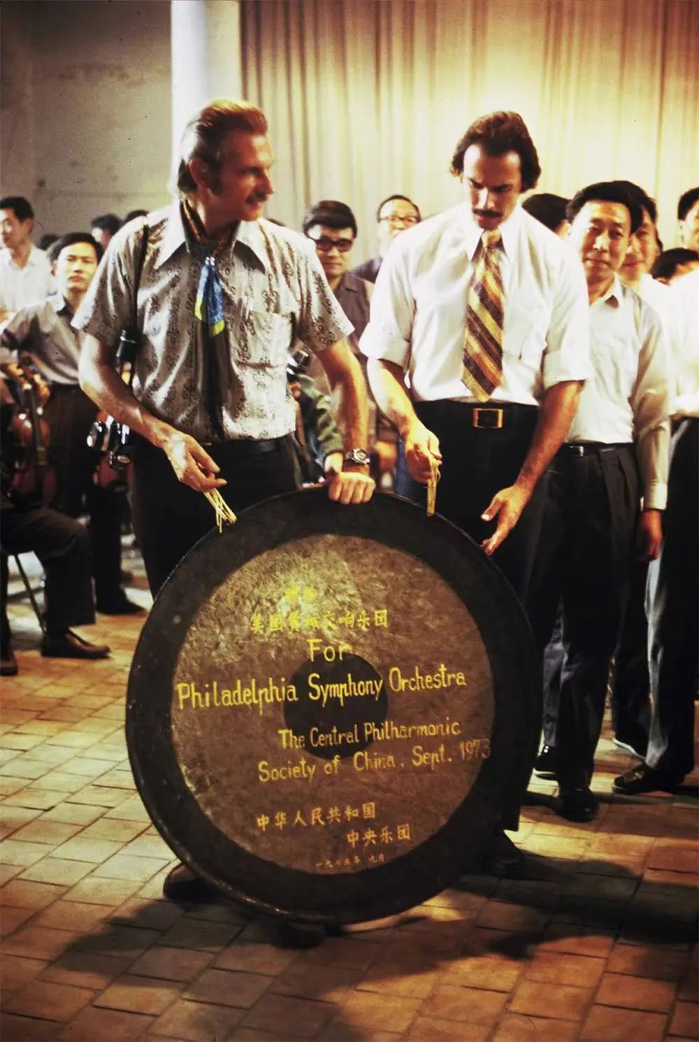 1973年,費城交響樂團中國之行收到中央樂團贈予的禮物:一面直徑1.1米的大鑼。