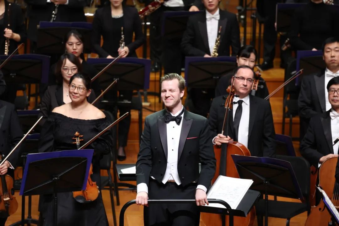 音樂會在現場全體觀眾不消歇的掌聲中,迎來了中、美兩國指揮家的兩度返場。先是特里斯坦·瑞斯·舍曼執棒,安可了一曲中國近代音樂家劉天華的《良宵》,接著是李心草執棒,安可了又一曲美國作曲家萊羅爾·安德森的《快樂的提琴手》。《良宵》原名《除夜小唱》,創作于1928年的除夕,表達了作者對美好未來的向往;《快樂的提琴手》則創作于1947年,演奏帶有炫技的意味,是美國各交響樂團舉行的音樂會上作為返場的常備曲目。兩首安可曲畢,音樂會方才完滿結束。