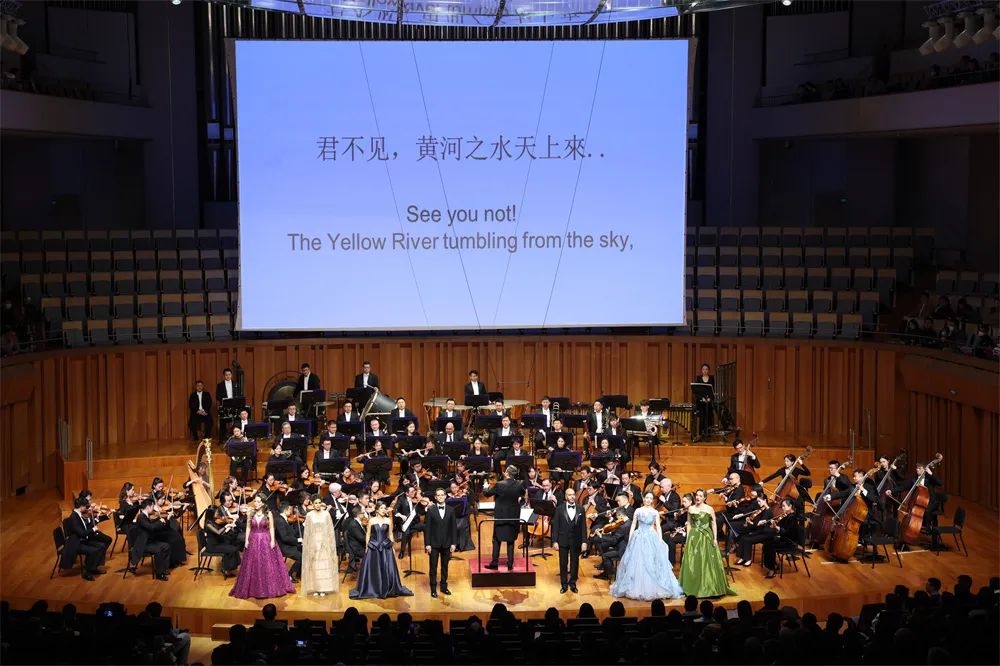 “唐詩的回響”音樂會選段在詩仙李太白的名篇《將進酒》中收尾,也結束了上半場的演出。“與君歌一曲,請君為我傾耳聽。”男、女歌唱家們協力將《將進酒》的五音繁會、氣象不凡演繹得大開大合。“詩情忽翕忽張,情極悲憤而作狂放,語極豪縱而又沉著。”可謂意境全出。